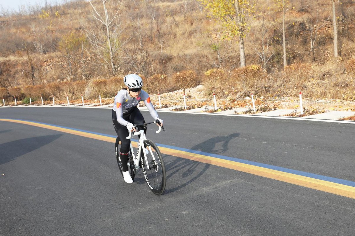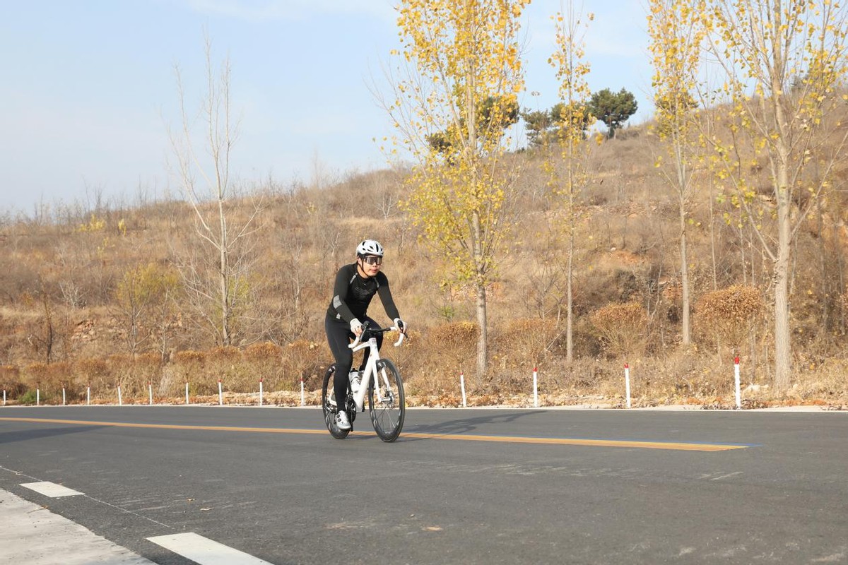 11月15日,骑行爱好者在河北省唐山市丰润区潘马公路骑行。
